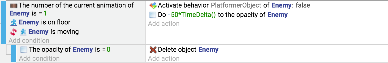 if (enemy.getAnimation() === 1 && platformerBehavior.isOnFloor() && !platformerBehavior.isMoving()) {